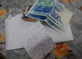 תושב צפת מצא מעטפה עם 2500 ש"ח ליד דלת ביתו