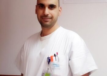 בצילום- הרב רחמים עמרוסי מהמועצה הדתית בצפת מעניק תעודת "כשר לפסח" למאיר חמוז המנהל האדמיניסטרטיבי של המרכז הרפואי זיו בצפת